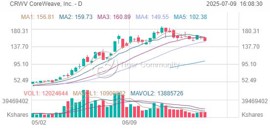 儘管下調評級,Moskowitz 仍將目標價從 70 美元大幅上調至 150 美元,反映出 CoreWeave 在極短時間內的驚人漲勢。