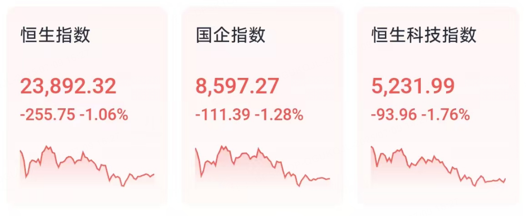 7月9日週三,港股三大指數午後進一步下挫,恒生科技指數一度大跌至2%,最終收跌1.76%,恒生指數、國企指數分別下跌1.06%及1.28%,恒指再度跌破24000點關口,大市情緒表現低迷,但個股行情持續演繹。