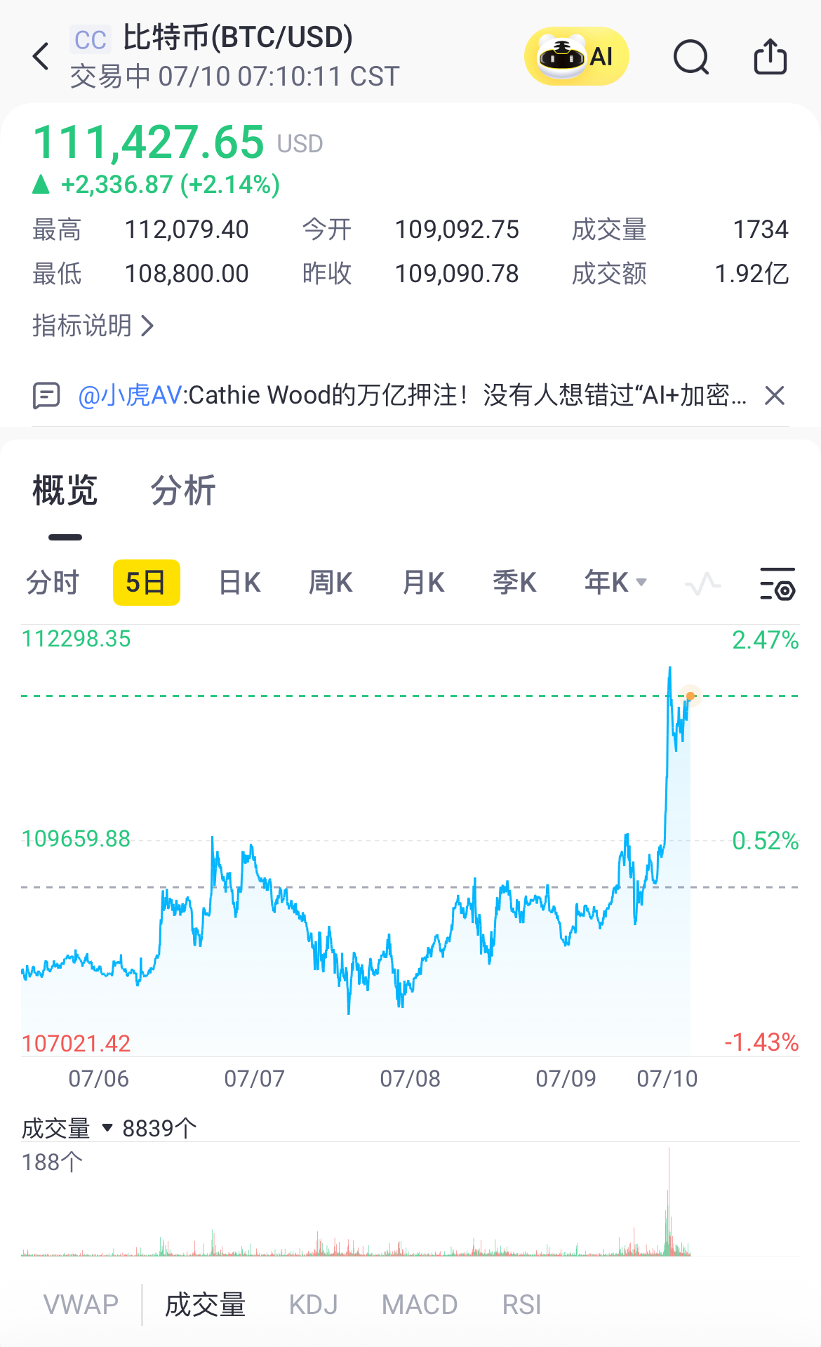 比特幣首次突破112,000美元,創下歷史新高。部分概念股盤後上漲, Bit Digital, Inc. 盤後漲超2%, Coinbase Global, Inc. 微漲0.23%, Circle Internet Corp. 微漲0.6%。
