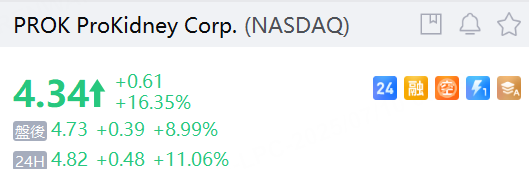 生物技術公司 ProKidney Corp. 夜盤再漲11%,腎病藥物試驗取得積極結果,近兩個交易日大漲逾6倍。