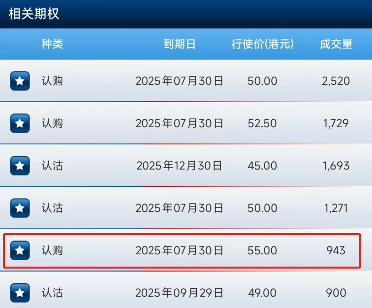 中國平安的認購合約成交量較高,其中,一份月末到期的CALL,行權價格55港元,仍有一定漲幅空間。