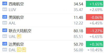 7月10日,美股航空股盤前大漲,達美航空漲超10%,聯合大陸航空、美國航空漲超6%,西南航空漲超2%。
