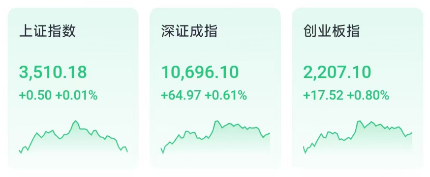 今日市場總體衝高回落,午後銀行板塊跳水,拖累指數震盪走低,市場成交額突破1.6萬億,較前一交易日放量超2000億,兩市個股漲多跌少。截至收盤,滬指漲0.01%報3510.18點,成交7536億元;深成指漲0.61%報10696.10點,成交9533億元。創業板指上漲0.80%,報2207.10點。