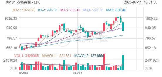 此前連創新高的新消費概念股老鋪黃金大跌超11%。