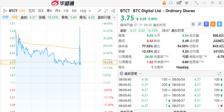 比特幣週五持續拉昇,向上觸及11.8萬美元/枚,再創新高;帶動美股加密貨幣股盤前集體走高, $BTCT 漲超30%,比特數字漲超9%,Strategy $MSTR 漲超3%,Coinbase漲超2%。