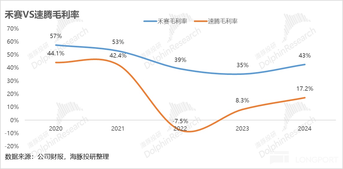 禾賽在 ADAS 激光雷達的技術路線上一直 all in VCSEL+ 半固態轉鏡方案,雖然初期在成本上並沒有速騰使用的 EEL+ 半固態 MEMS 方案有優勢(當時更成熟的方案,降本路徑更清晰,著需要精簡 EEL 激光器數量),所以速騰也一直採用低價戰略搶佔 ADAS 的市場份額(速騰的毛利率和 ADAS 激光雷達的價格相比禾賽更低)。