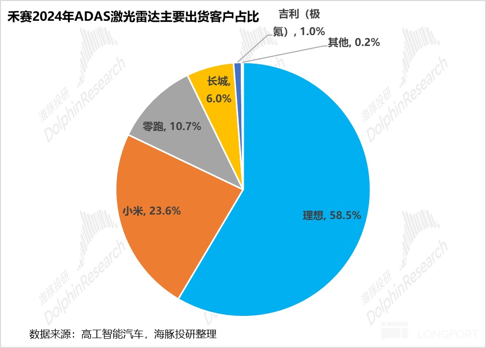 而從 2024 年禾賽 ADAS 雷達的下游客戶來看,其中前三大出貨客戶以理想,小米,零跑爲主,出貨量佔 ADAS 出貨量比例達到 93%,禾賽乘用車賽道通過綁定大客戶實現了出貨量的快速增長。