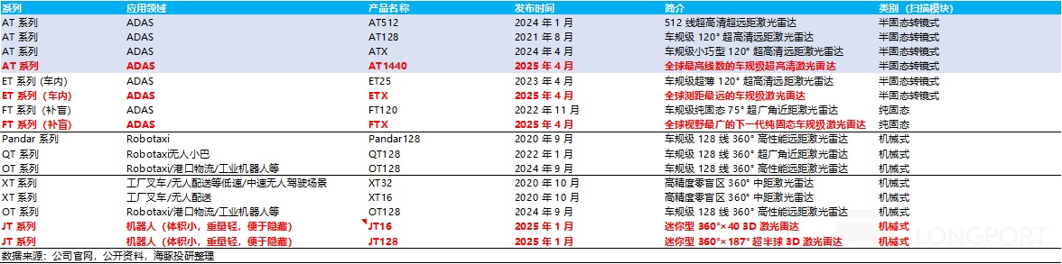 所以由此看出,禾賽的激光雷達佈局相對完善,公司善於踩中熱門賽道實現產品切換。初期用 Pandar 系列佈局 L4 Robotaxi 賽道,後在該賽道遇冷後,又迎合了乘用車賽道對激光雷達高增趨勢,用 AT 系列佈局乘用車 ADAS 賽道(2025 年主要出貨產品爲 ATX),在 2024-2025 年實現了快速放量。
