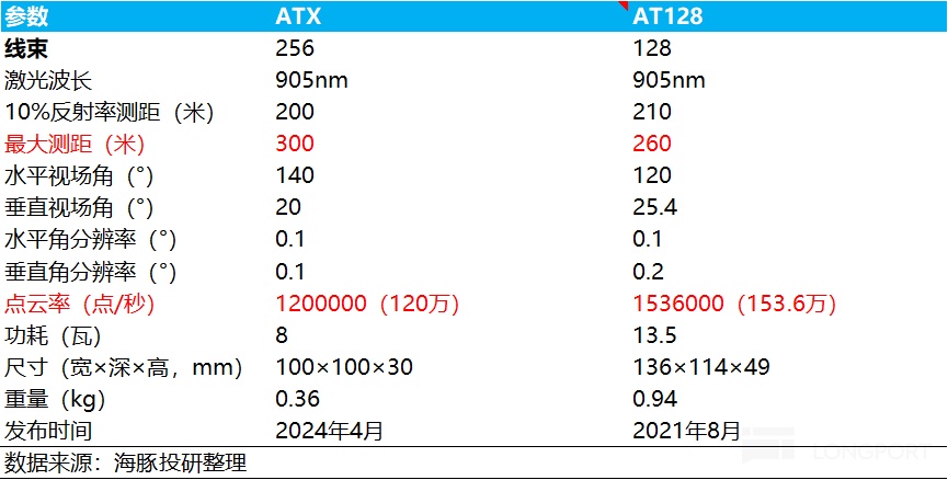 而在體積和重量上,與 AT128 相比,ATX 系列體積縮小了 60%,重量減輕了 50% 左右,成爲了更具備成本,美觀度,和性能的選擇,截至 2025 年 2 月,已獲得 11 家車企的設計訂單。