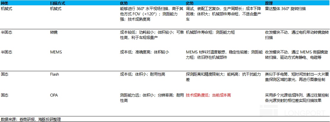 再從兩家的技術路線比較來看,目前的激光雷達技術端尚未呈現收斂狀態:
