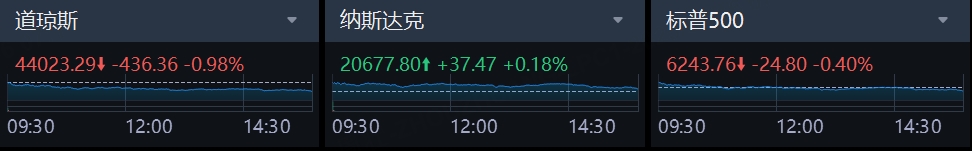 美股三大指數收盤漲跌互現,納指漲0.18%刷新收盤新高;截至收盤,標普500指數收跌0.4%,報6243.76點;納斯達克綜合指數漲0.18%,報20677.8點;道瓊斯工業平均指數跌0.98%,報44023.29點。