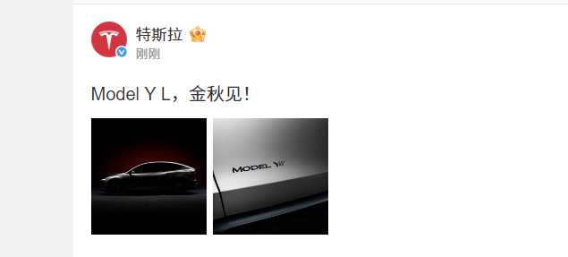 特斯拉在官微上宣佈,“Model Y L,金秋見”。據悉,Model Y L是特斯拉上海超級工廠出品的旗艦車型。該車型是一款大六座豪華純電SUV,軸距超過3米,車長約5米。Model Y L爲全輪驅動車型,具有超長續航、超大空間和更高級的內飾,定位介於Model Y和Model X之間,業內人士預計售價在40萬元左右。該車型將於今年秋季上市交付。
