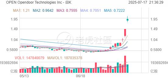 Opendoor漲26%,本月已飆升180%。這輪暴漲主要由散戶投資者推動。本週,Opendoor相關頁面的瀏覽量激增。