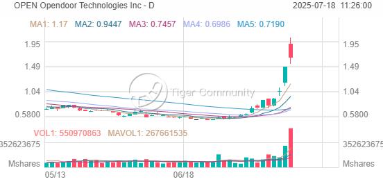 專注於科技股的多空對沖基金EMJ Capital的總裁兼創始人傑克遜,曾在 Carvana Co. (CVNA) 股價反彈前就提前預測到其轉機。他於7月14日在社交媒體X上發佈了一條長帖,闡述了他看好Opendoor的觀點。他列舉了多個有利因素,並總結道:“我們相信它(Opendoor)在未來幾年可能成爲一隻百倍股。”自他發表此言論以來,該股股價已上漲約一倍,週四收於1.65美元。