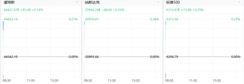 7月21日(週一)道瓊斯指數開盤上漲80.29點,漲幅0.18%,報44422.48點;標普500指數開盤上漲13.59點,漲幅0.22%,報6310.38點;納斯達克綜合指數開盤上漲76.72點,漲幅0.37%,報20972.38點。