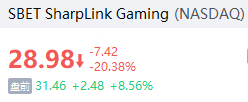 以太幣儲備概念股盤前延續強勢,SharpLink Gaming、BTCS Inc、GameSquare漲超8%。