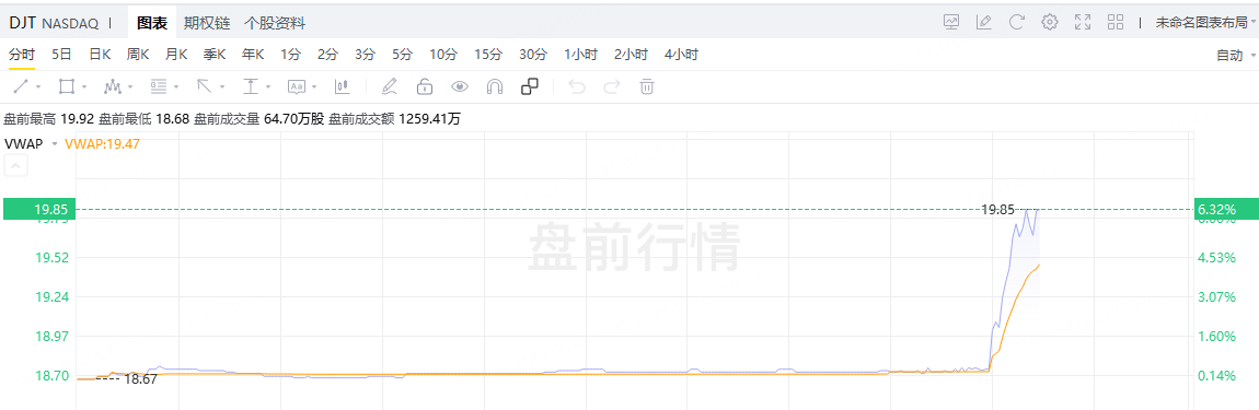 特朗普媒體科技集團盤前拉昇漲超6%,公司宣佈其比特幣儲備購買總額已達20億美元。
