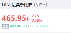 達美樂比薩盤前漲超3%,公司發佈2季度財報。