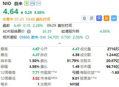 華盛資訊7月21日消息,蔚來(NIO.US)漲近6%,報4.64美元。 消息面上,7月20日,蔚來創始人李斌宣佈,樂道L90開啓預售後的第二個週末,門店人氣持續高漲。蔚來已在全國多地的大型商場門口安排展車,並計劃下週將L90試駕車送達全國門店,以便消費者體驗。