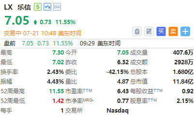 樂信(LX.US)漲超11%,報7.05美元。消息面上,樂信7月21日宣佈6000萬美元股票回購計劃。其中,董事會授權公司在未來12個月內回購不超過5000萬美元公司股票;同時公司CEO肖文傑計劃個人出資不超過1000萬美元增持公司的ADS。