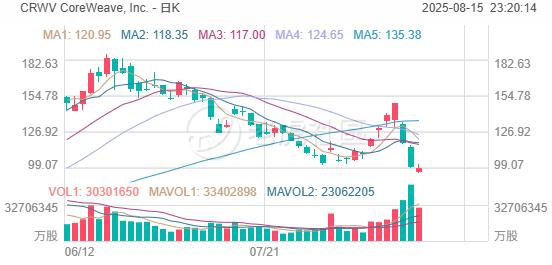 週五,與英偉達關係密切的人工智能基礎設施供應商CoreWeave, Inc. 盤中跌3%,截至發稿跌超0.6%,近三個交易日累跌超33%。消息稱 摩根大通 通過一筆大宗交易賣出大約500萬-600萬股CoreWeave股票,每股價格大約97美元。高盛和摩根士丹利也採取了類似的大宗交易。