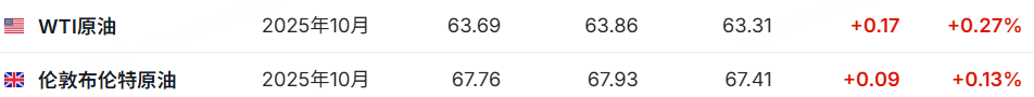 原油期貨上漲,截止發稿,WTI原油漲0.27%,報63.69美元/桶;布倫特原油漲0.13%,報67.76美元/桶。