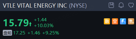能源公司 VITAL ENERGY INC 大漲超9%,Crescent Energy將通過全股票交易收購Vital Energy,總價值約31億美元。