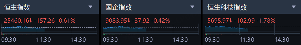 9月2日,港股上午盤三大指數小幅衝高後跳水轉跌,未能延續昨日強勢上漲行情。截止收盤,恒生科技指數跌幅最大,午間收跌1.78%,恒生指數、國企指數分別下跌0.61%及0.42%。