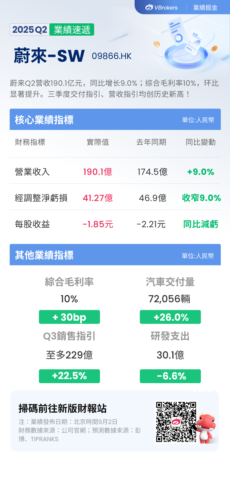 華盛資訊9月2日消息,蔚來 $09866.HK $NIO 今日公佈截至2025年6月30日止的2025財年Q2業績。