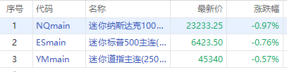 美股三大指數期貨盤前集體走低,納指期貨 $NQmain 跌0.97%,標普500期貨 $ESmain 跌0.76%,道指期貨 $YMmain 跌0.57%。
