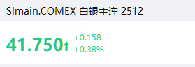 白銀漲0.38%,報41.75元/盎司。
