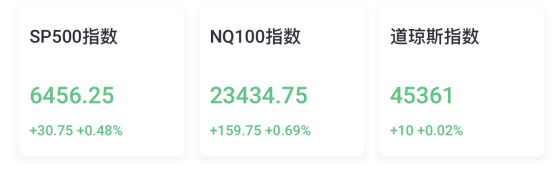 9月3日週三,美股三大股指期貨在盤前時段上漲。納指100指數期貨漲0.69%,報23434點,標普500指數期貨漲0.48%,報6456點,道瓊斯指數期貨跌0.02%,報45361點。