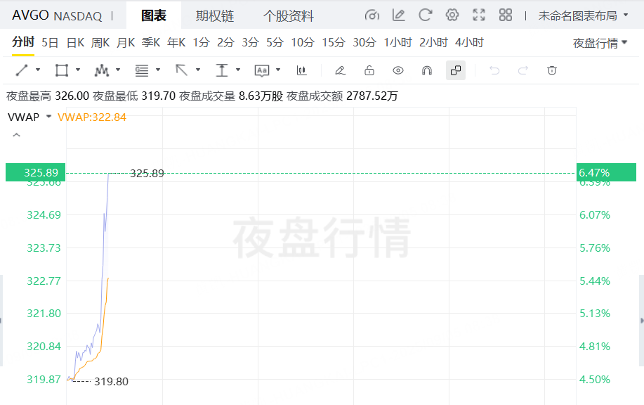 博通夜盤直線拉昇,現漲幅擴大至逾6%。據英國金融時報,OpenAI將與博通開始批量生產自研人工智能芯片,將於明年發貨。