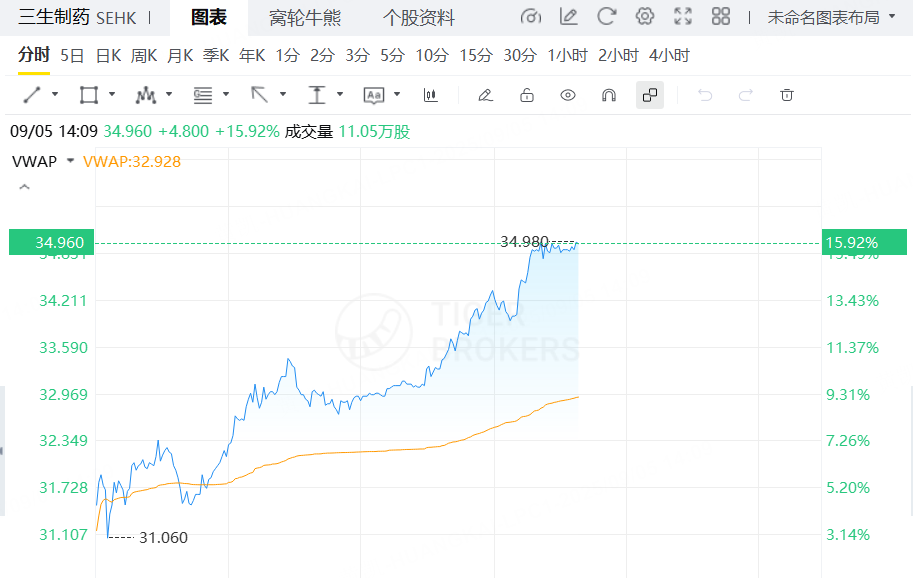 9月5日,港股創新藥概念股午後持續走強,三生製藥漲近16%,歐康維視生物-B漲近15%,康諾亞-B漲近13%,石四藥集團漲近10%,晶泰控股漲近8%,中國生物製藥漲超6%。