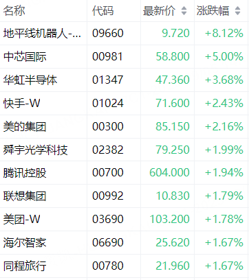 港股異動 | 恒生科技指數漲1.5%,地平線機器人漲超8%