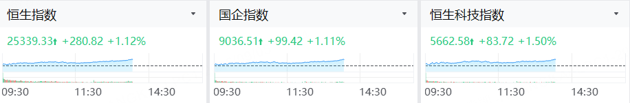 9月5日,恒生指數盤中漲超1%,恒生科技指數漲1.5%。