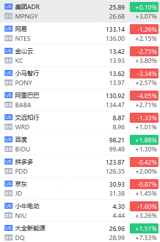 中概股盤前多數上漲,大全新能源漲超7%,金山雲、美團、小牛電動漲超3%,阿里巴巴、拼多多、網易、小馬智行漲超2%,百度、京東漲超1%。