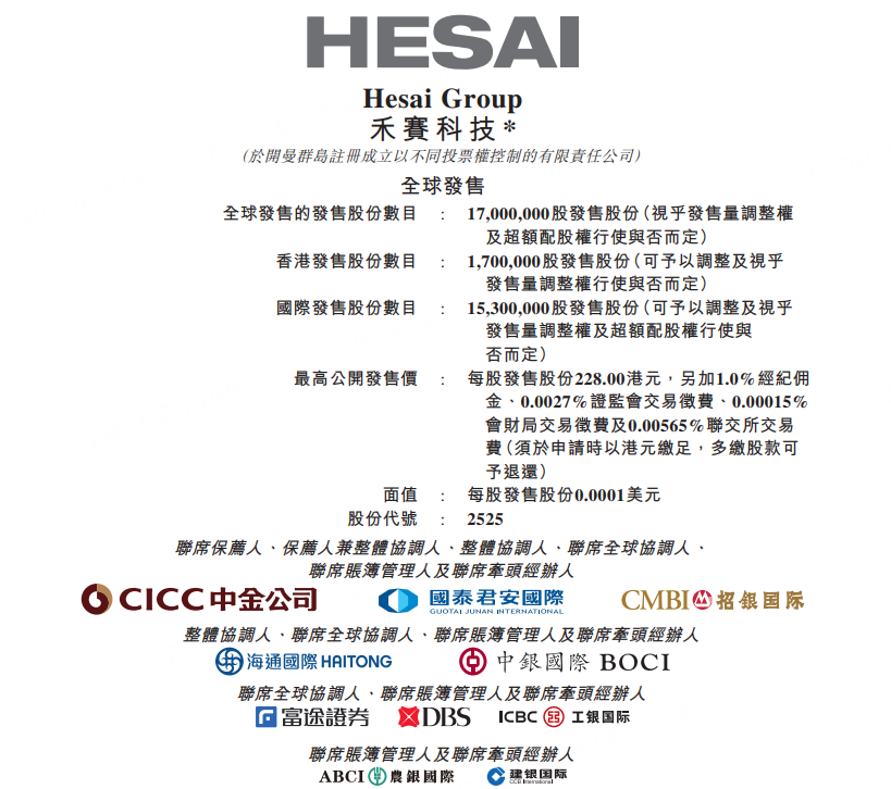 9月8日,禾賽-W於9月8日-9月11日招股,擬全球發售1700萬股,香港公開發售佔10%,國際發售佔90%,另有約15%超額配股權。發售價將不會超過每股發售股份228.00港元,每手20股B類普通股,預期B類普通股將於9月16日在聯交所開始買賣。