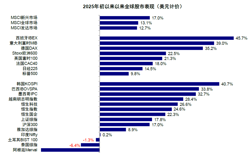 回顧2025年全年行情脈絡,港股在全球股市中整體表現居中,且呈現明顯的階段性特徵。年初,港股依託AI概念驅動的恒生科技板塊,一度成爲全球市場中的“贏家”;但此後受美國對等關稅壓力影響,港股陷入回調,4-6月恒生科技指數修復進程緩慢;進入7月後,A股憑藉流動性推動的科創行情快速走高,而港美股則均在高位震盪,升幅相對有限,港股近期的相對落後,本質上反映出其缺乏足夠的基本面催化因素。