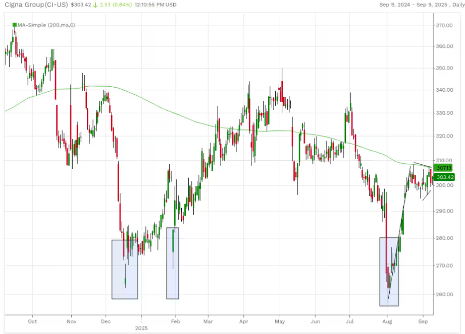 同業公司 信諾保險 股價也隨聯合健康上漲,週二小幅走高0.4%。