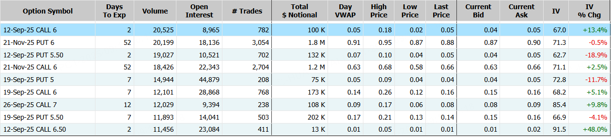 蔚來隔夜跌近9%,期權合約成交44.69萬張,較90日均量放大2.5倍。9月12日到期的6美元的行權看漲期權交易量特別高,共有20,525份合約交易。 $NIO 20250912 6.0 CALL$