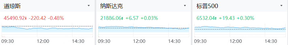 週三,美國三大指數漲跌不一。截至收盤,道瓊斯指數跌0.48%,報45490.92點;標普500指數漲0.3%,報6532.04點;納斯達克綜合指數漲0.03%,報21886.06點。