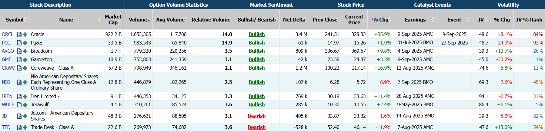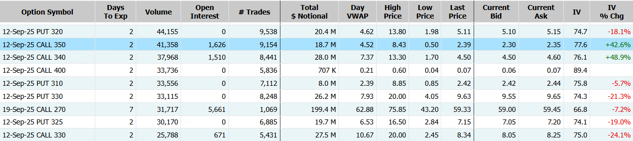 甲骨文隔夜漲近36%,期權合約成交171.81萬張,較90日均量放大14倍。9月12日到期的350美元的行權看漲期權交易量特別高,共有41,358份合約交易。 $ORCL 20250912 350.0 CALL$