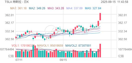 期權方面,特斯拉當日期權成交653.3萬張,較90日均量放大2.7倍,看漲期權佔比攀升至64.3%,其中於9月12日到期的400美元行使價的看漲期權成交居前,成交近36萬張。