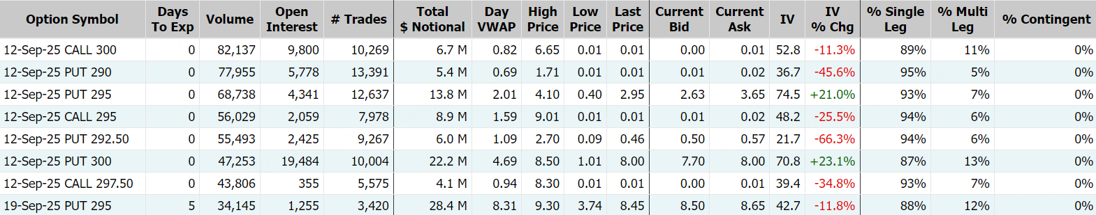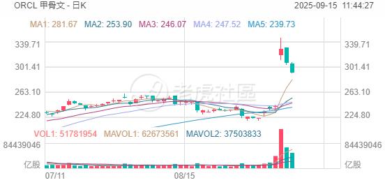 期權方面,甲骨文當日期權成交126.93萬張,較90日均量放大8.4倍,看漲期權佔比49.7%,其中於9月12日到期的300美元行使價的看漲期權成交居前,成交逾8.2萬張。