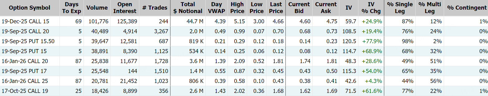 期權方面,華納兄弟探索公司當日期權成交逾80萬張,較90日均量放大18.7倍,看漲期權佔比69.4%,其中於12月19日到期的15美元行使價的看漲期權成交居前,成交逾10萬張;此外,從期權鏈上看,華納兄弟探索公司多張Call單翻倍大漲。