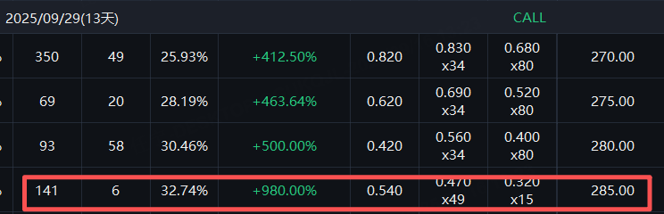 部分CALL的成交價格大漲,其中一份本週到期合約,行權價112.5港元,價格飆升1100%。雖然成交量不大,但或許可以代表一種市場態度。