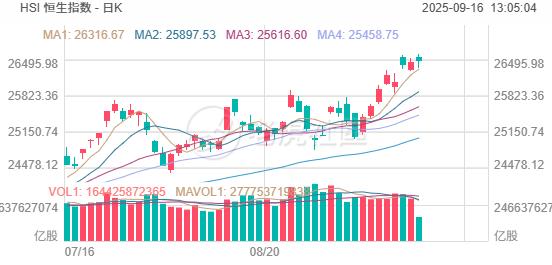9月16日週二,港股三大指數高開後一度轉跌,臨近午盤再度回暖,盤中再度刷新階段性高位。截至午盤,恒生指數漲0.07%,國企指數漲0.1%,恒生科技指數漲0.39%。