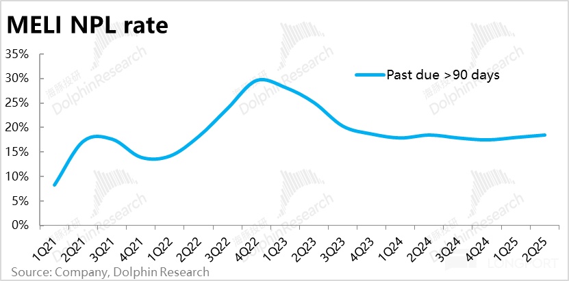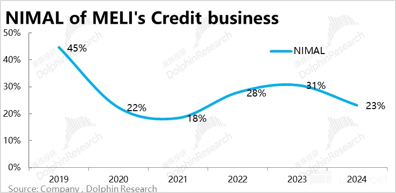 但好在拉美地區極高的利率水平,給了Meli能承擔如此高壞賬比例的空間,甚至還能給自身留下20%的淨息差。從這角度看,若後續公司能夠提高信用分析能力,壓降壞賬比率,公司目前已很高的淨息差就還能有不小的提升空間。