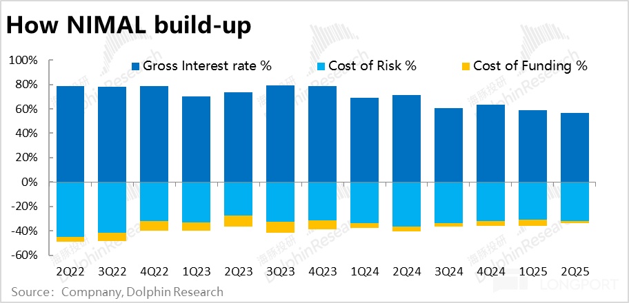那麼上述壞賬風險到底有多高,在公司信貸業務的UE模型內有多大的影響?我們根據公司披露的NIMAL、利息收入和壞賬支出計提,構建了公司信貸業務的NIMAL構成。